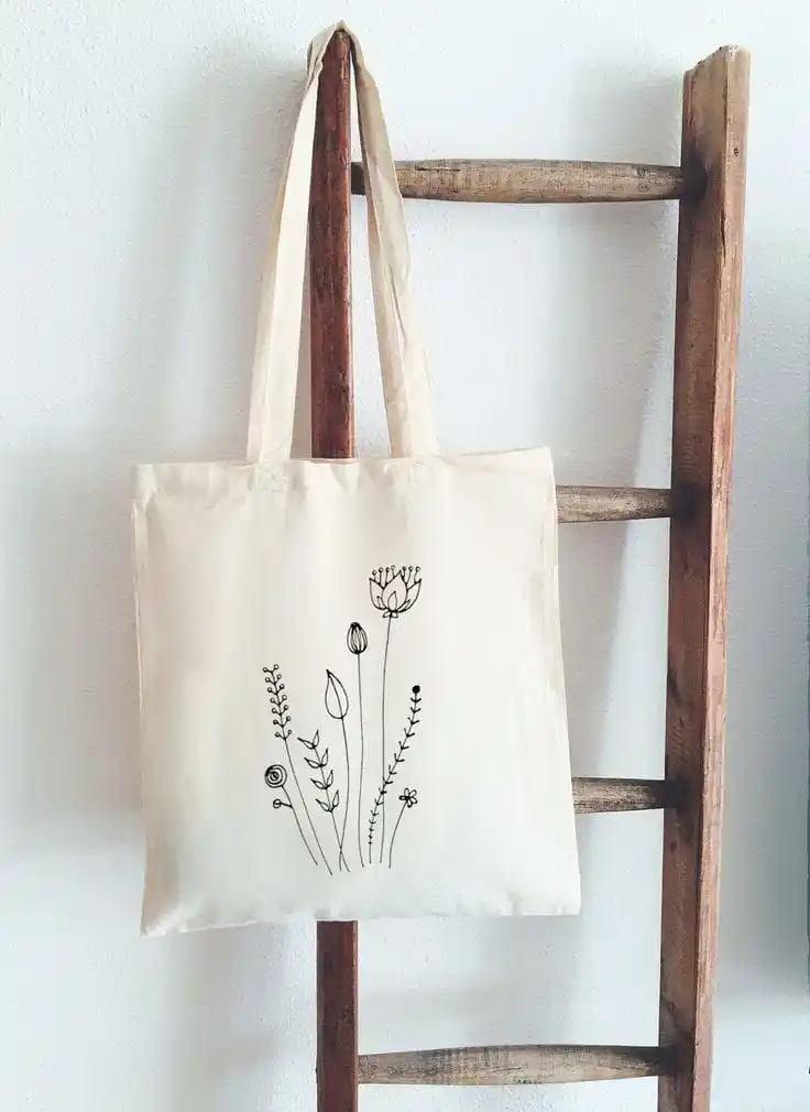 Add a touch of minimalist elegance to your routine with this beautiful hand-drawn floral tote bag. Made from durable, eco-friendly canvas, this bag is a chic and practical accessory for carrying your belongings while celebrating a love for art and nature.