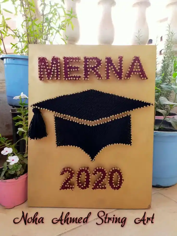 Elegant Design: The sophisticated dark gray background provides a perfect contrast to the intricate golden string work, creating a modern and elegant aesthetic.
