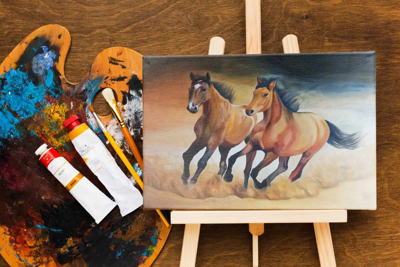 Dynamic and Expressive: The motion of the horses is beautifully captured with expressive brushstrokes and a sense of movement, making the piece feel alive and full of energy.